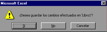 En caso de detectar un archivo al cual se le ha realizado una modificación no almacenada, Excel nos avisará de ello mostrándonos el siguiente cuadro de diálogo: