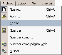 Una vez hayamos terminado de trabajar con un archivo, convendrá salir de él para no estar utilizando memoria inútilmente. La operación de salir de un documento recibe el nombre de Cierre del documento. Se puede cerrar un documento de varias formas. |