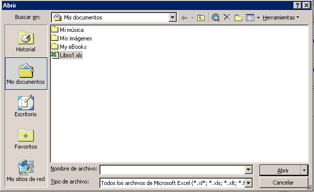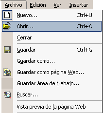 la opción Abrir del menú Archivo.