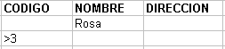 Se filtrarán los registros de nombre Rosa y que además tengan un código mayor que 3. Si en la zona de criterios tenemos:
