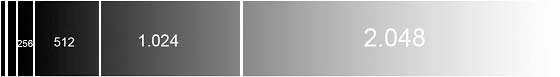 Si seguimos el razonamiento vemos que la distribución de los 4.096 tonos disponibles no es proporcional. No se distribuyen 2.048 tonos para las sombras hasta el gris medio y los otros 2.048 tonos entre el gris medio y las luces.