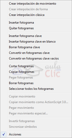 - Hacemos clic con el botón derecho sobre el único fotograma existente en este momento.