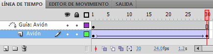 Y para acabar, hacemos coincidir el fotograma final de la interpolación con el final del trazado de la guía. Es importante que el símbolo esté encontacto con la guía. No es necesario colocarlos al principio del trazado ya que Flash lo hace automáticamente.