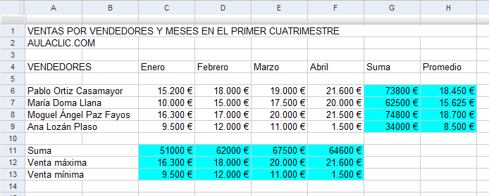 La división de ventas de una empresa necesita hacer un seguimiento continuo de las ventas obtenidas por los vendedores para el primer cuatrimestre del año. Los datos van a servir para obtener información sobre las ventas de cada mes y para decidir la forma de actuar.