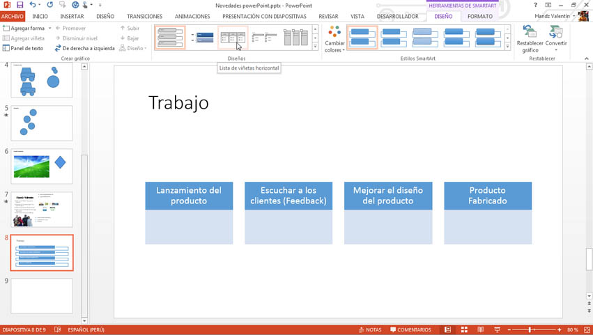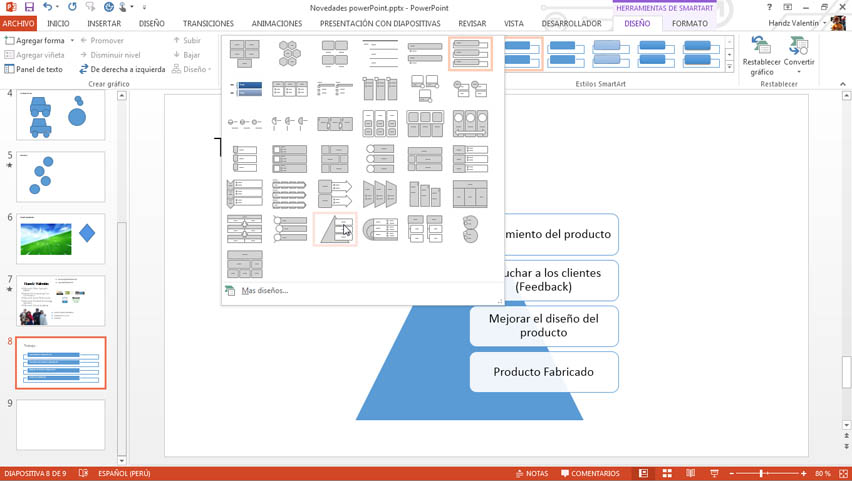 Para cambiar el diseño de un gráfico SmartArt siga estos pasos: