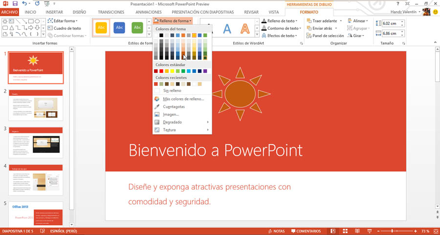 Para elegir un color de relleno en una Forma siga estos pasos: