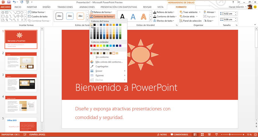 Para elegir un color de contorno en una Forma siga estos pasos: