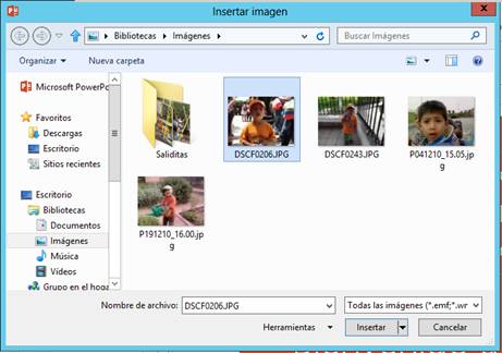 5° En la ventana de diálogo Insertar imágenes, seleccione una opción donde se encuentre la imagen que desea agregar a la forma.