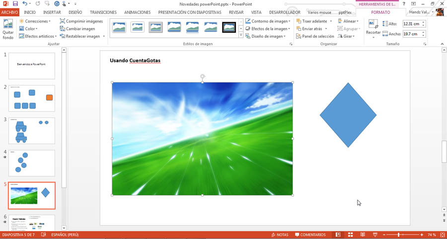 1° Agregue por ejemplo una imagen y a la derecha una forma, tal como lo muestra la siguiente imagen.