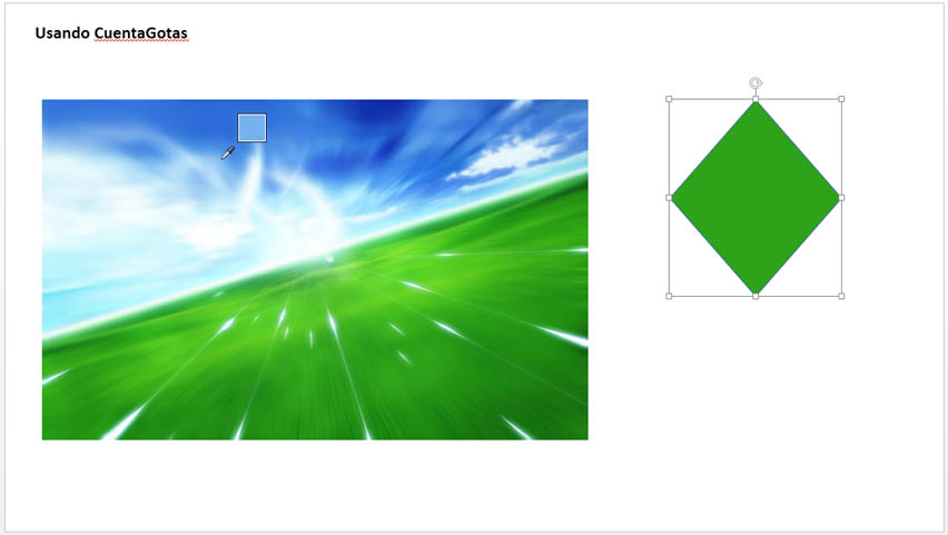 A partir de esta versión se encuentra la opción de cuentagotas que permite rellenar una forma copiando el color original de otro objeto. Para usar esta nueva opción siga estos pasos: