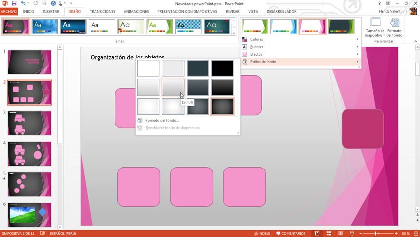 3° Señale Estilos de fondo y seleccione el que más le convenga.