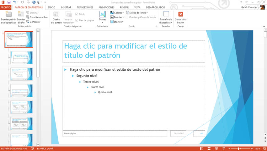 Para activar la vista Patrón de diapositivas, siga estos pasos: