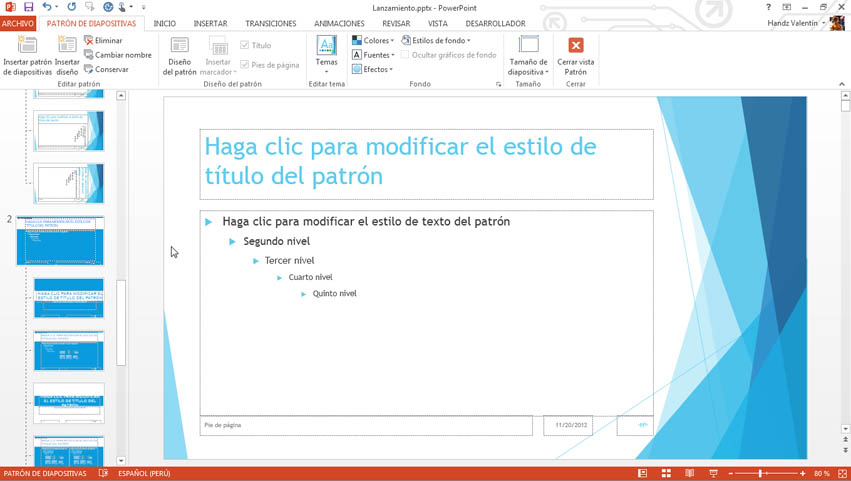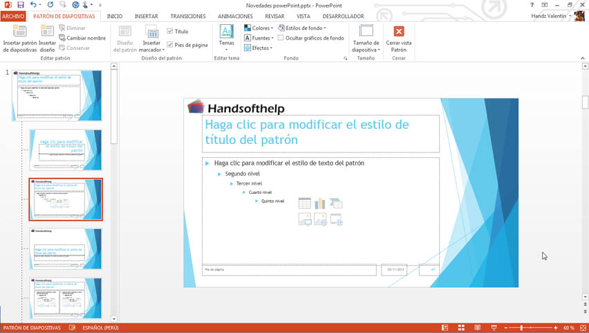 Cuando un usuario trabaja en la vista Normal de PowerPoint, podrá ver que todos los diseños insertados poseen el objeto, lo mejor, es que este objeto se comporta como un fondo de imagen que nadie puede manipular, a menos que vuelva a activar la vista patrón de diapositivas. La siguiente imagen muestra la vista Normal y aplicando un diseño de diapositiva.