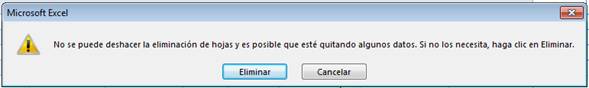 2° En el mensaje de advertencia, haga clic en Eliminar para que la hoja y los datos se eliminen, o haga clic en Cancelar si desea aún mantener su hoja.