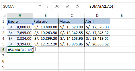 La sintaxis de una función se refiere a cómo debemos escribirla. Todas las funciones comienzan con el signo "igual" (al igual que una fórmula), luego se escribe el nombre de la función y finalmente, entre paréntesis se escriben sus argumentos. En la celda C14 hemos escrito una función sencilla para estudiar su sintaxis.