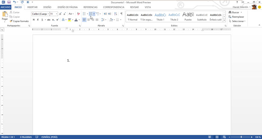 Nota: Ambos botones "recordarán" qué tipo de lista utilizó por última vez y usarán el mismo tipo cuando vuelva a activar dichos botones. Por lo tanto, si la última lista numerada que utilizó era realmente una lista con letras, obtendrá otra lista con letras la próxima vez que haga clic en el botón Numeración. Y si el último diseño de viñeta que utilizó era un cuadrado negro, obtendrá este diseño la próxima vez.