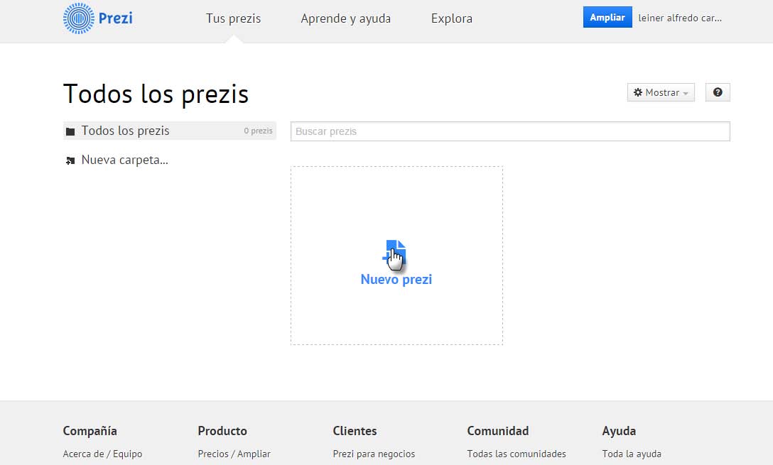 1. pulsa clic en este enlace llamado nuevo Prezi.