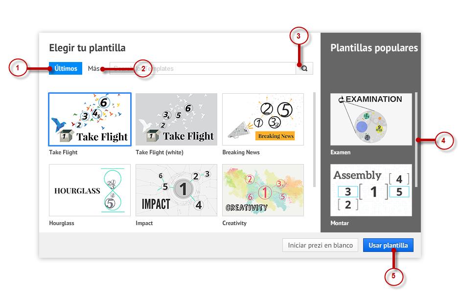 Nota: También puedes iniciar Prezi en blanco, donde realizarás tus presentaciones sin ninguna plantilla en especial.