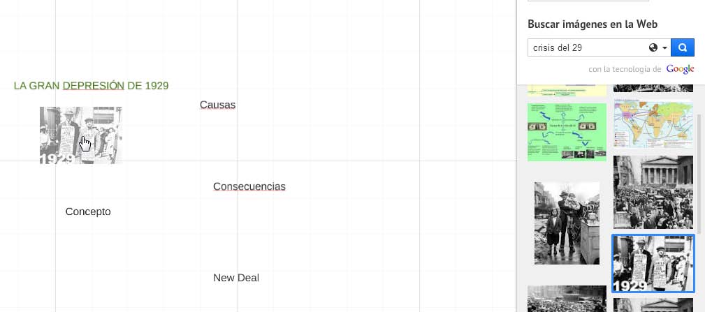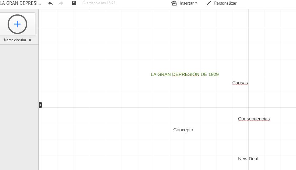 3° Coloque el título, temas y subtemas en el lienzo utilizando el editor de texto.