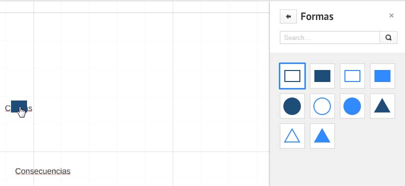 6° Con la opción Símbolos y formas inserte rectángulos.