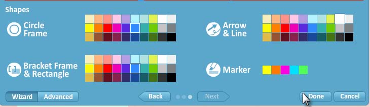 Al pulsar clic en el botón Next te llevará a este panel donde puedes elegir los colores que deseas para los marcos, flechas o marcadores si es que se ha añadido con anterioridad.