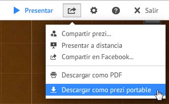 1° Desde el menú Compartir selecciona la opción Descargar como Prezi portable.