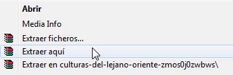 3° Pulse clic derecho sobre el archivo comprimido y elija la opción Extraer aquí.