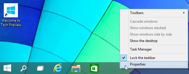 1. Dé clic derecho en un espacio libre de la Barra de tareas y clic en Properties (Propiedades.)