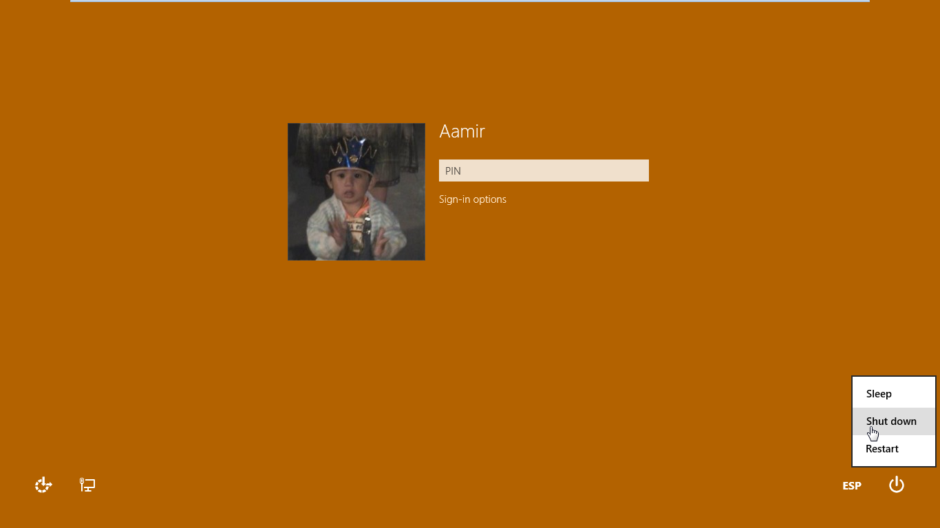 8. Mueva su Lock Screen, seleccione su cuenta de usuario (al cual cerró sesión hace unos instantes) y haga clic en Power.