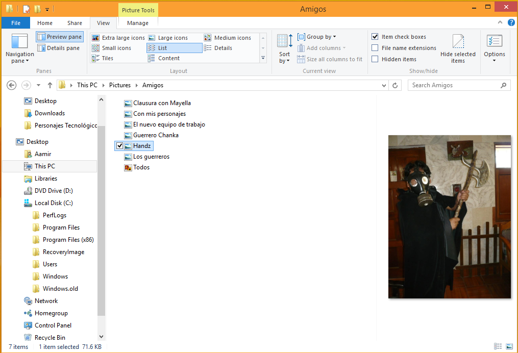 14. Haga clic en List. Ahora se muestran los archivos en forma de listas, además los íconos son pequeños.