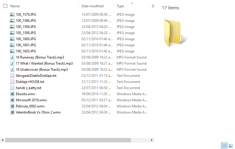 3. En la columna Type, pulse clic y note como los archivos se ordenan por tipos (música, videos, documentos, etc). Como puede ver, es una manera más fácil de organizar los archivos por tipo de extensión, de esta manera, por ejemplo, puede encontrar un documento más rápido.
