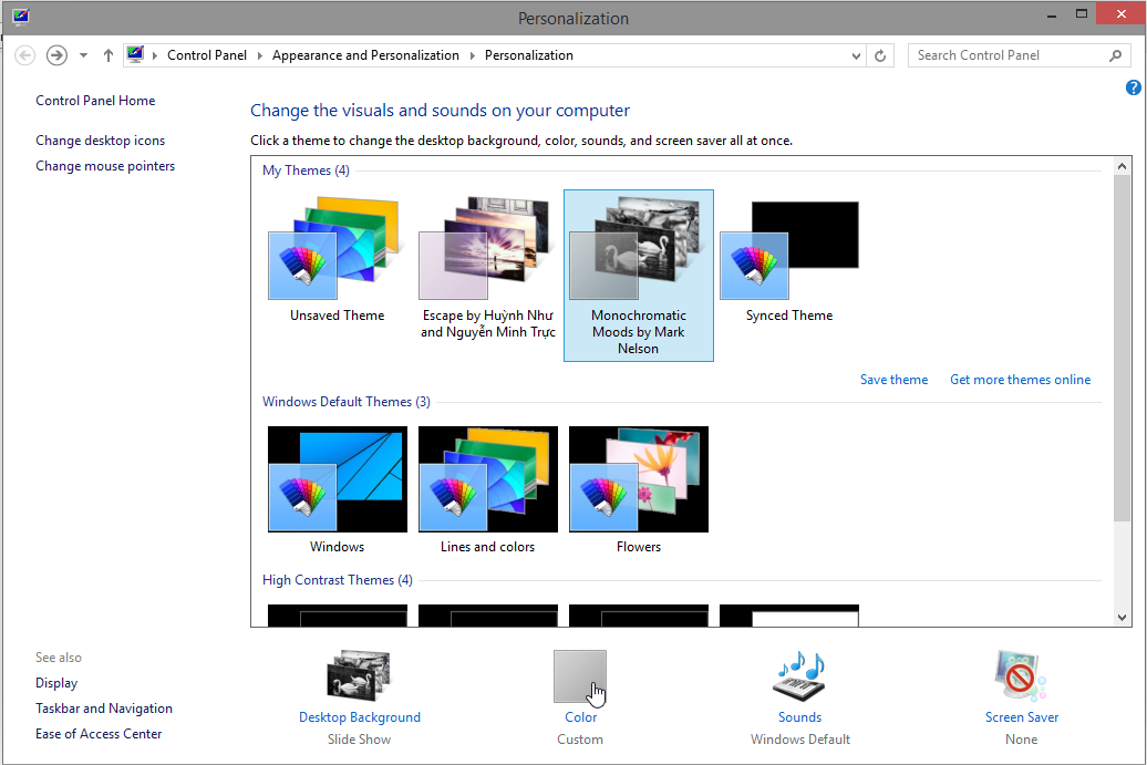 2. En la ventana Personalization, en la parte inferior de la ventana, haga clic en Windows Color.