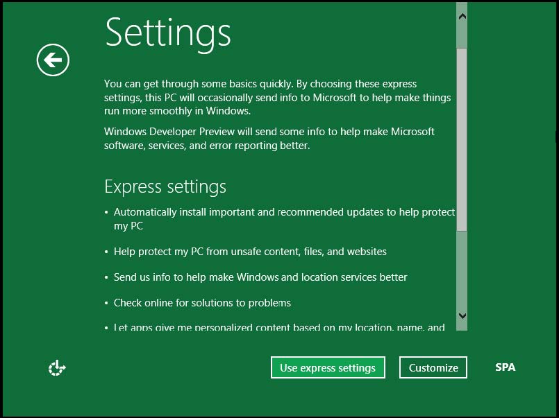 En la siguiente pantalla de Configuraciones, puedes elegir dos modos de configuración, la Express y la Customize.