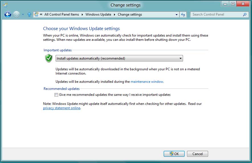 7° En la sección Actualizaciones importantes verifique que esté activo la opción Instalar actualizaciones automáticamente.