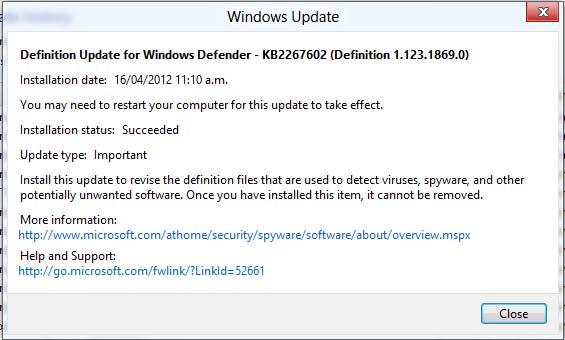 Se abre un pequeño cuadro de diálogo mostrando las características de una de las actualizaciones instaladas. Desde aquí podrás ver exactamente para qué funciona dicha actualización. Además encontrará enlaces para obtener más información desde el sitio web de Microsoft, o acceder a la ayuda y soporte técnico.
