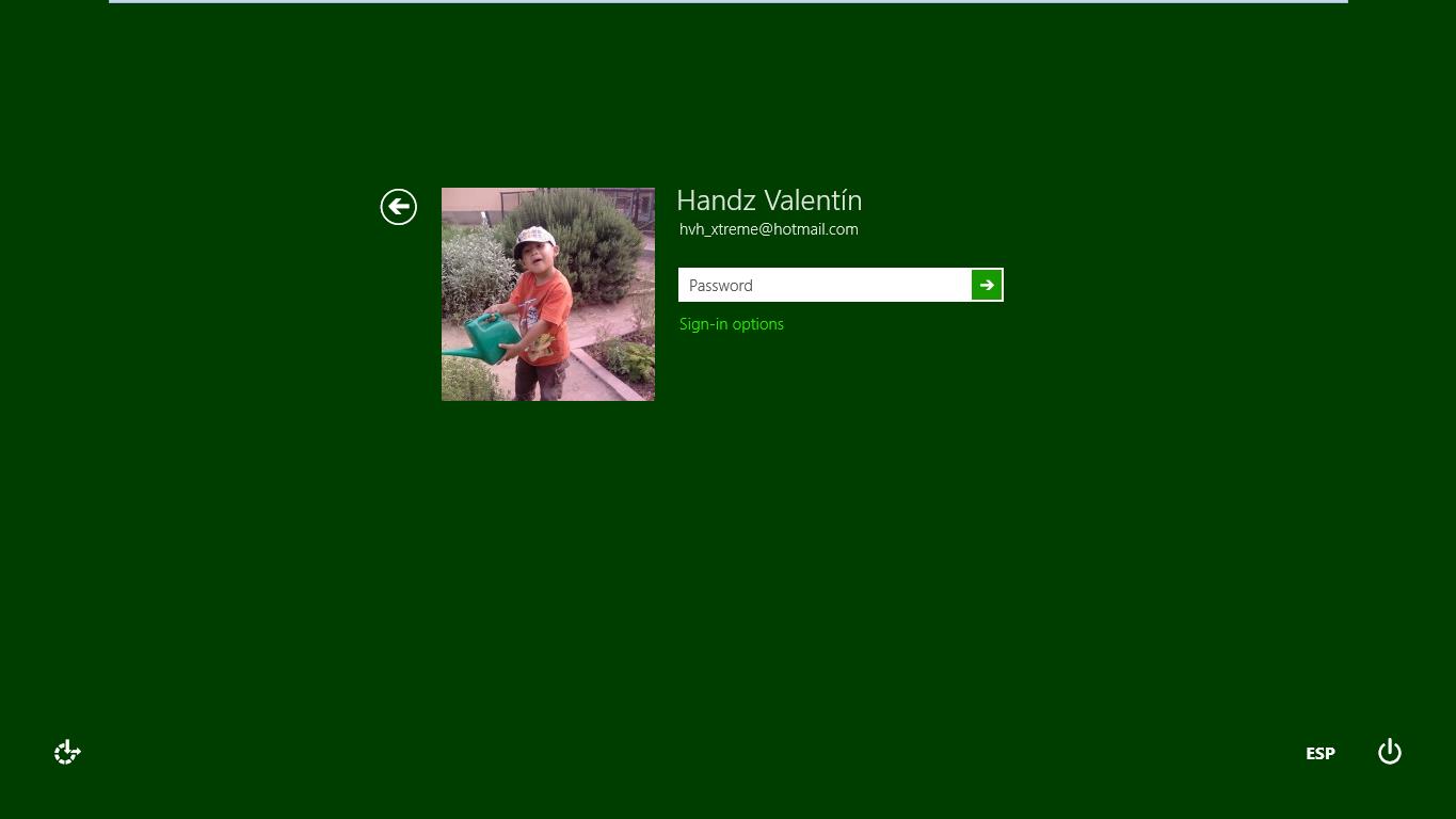 La pantalla para iniciar sesión muestra la imagen de su cuenta de usuario, así como el nombre, correo electrónico y el campo para su contraseña. Es posible que debajo del campo de contraseña se encuentre la opción Opciones de inicio de sesión el cual permite elegir otras formas de iniciar sesión, como la Contraseña de imagen o el PIN.