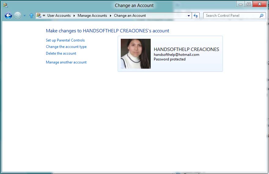En la ventana Cambiar una cuenta podrá ver diversas opciones que podrá cambiar. Una cuenta Microsoft no permite, ni siquiera al administrador, realizar algunos cambios con respecto a los datos personales del usuario.