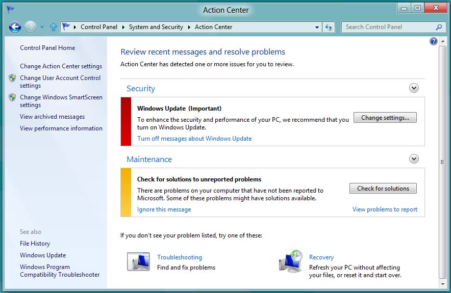 Se abre la ventana Action Center.