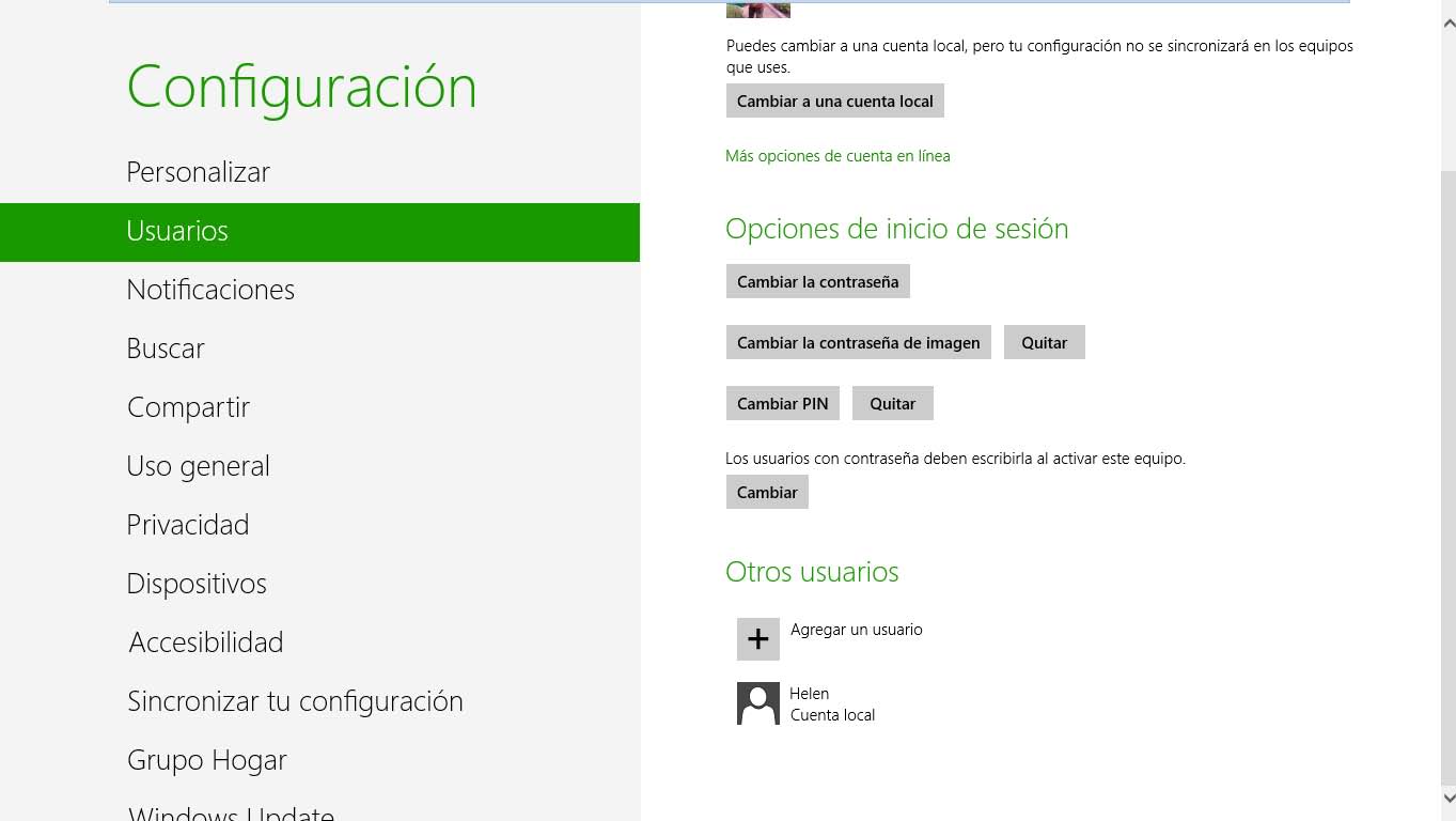 3° En la aplicación Configuración, en el panel izquierdo haga clic en Usuarios.