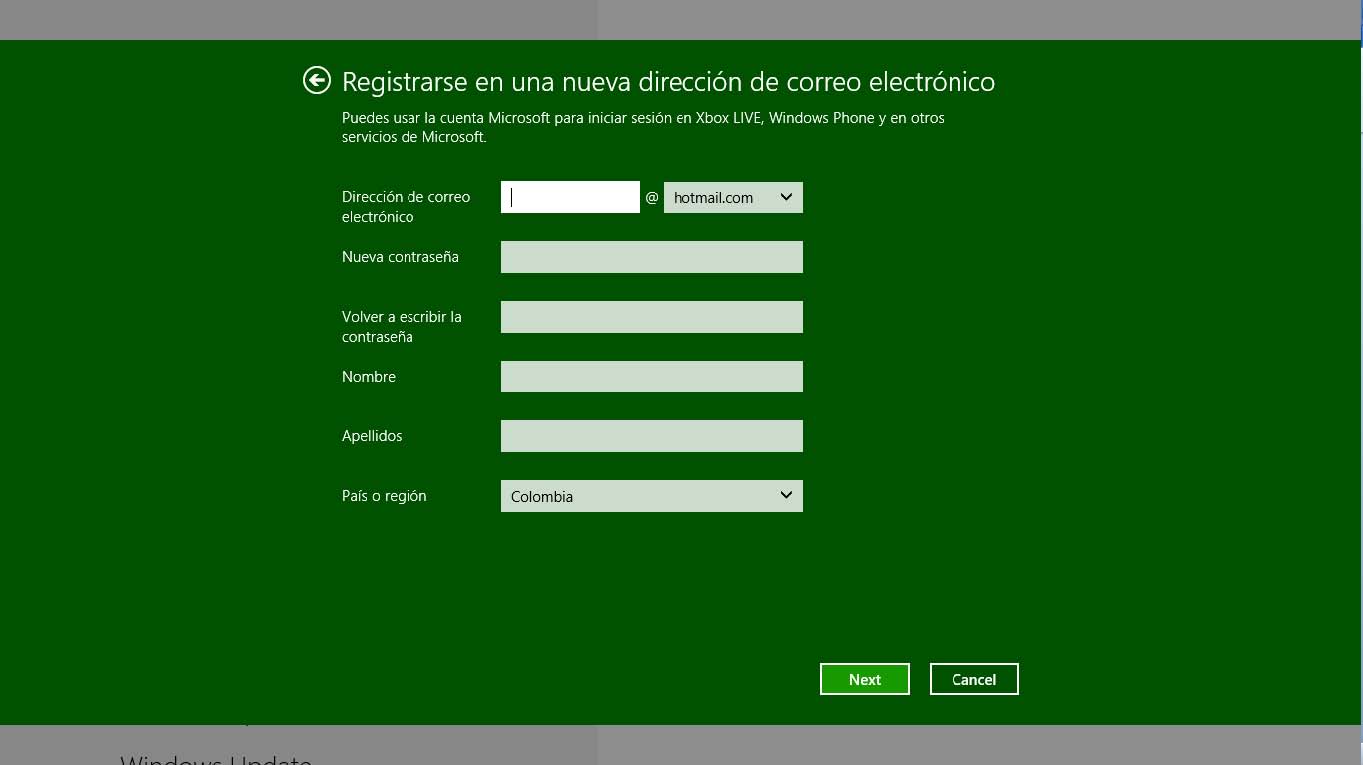 Si el usuario que vas a agregar no tiene una cuenta Microsoft, puede crear una haciendo clic en el enlace Registrarse en una nueva dirección de correo electrónico.