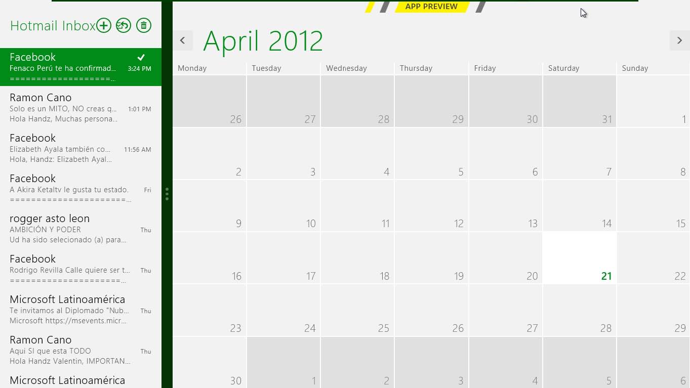 Observe como ahora Calendar ocupa el espacio más amplio en la pantalla, mientras Mail se muestra reducido a la izquierda.