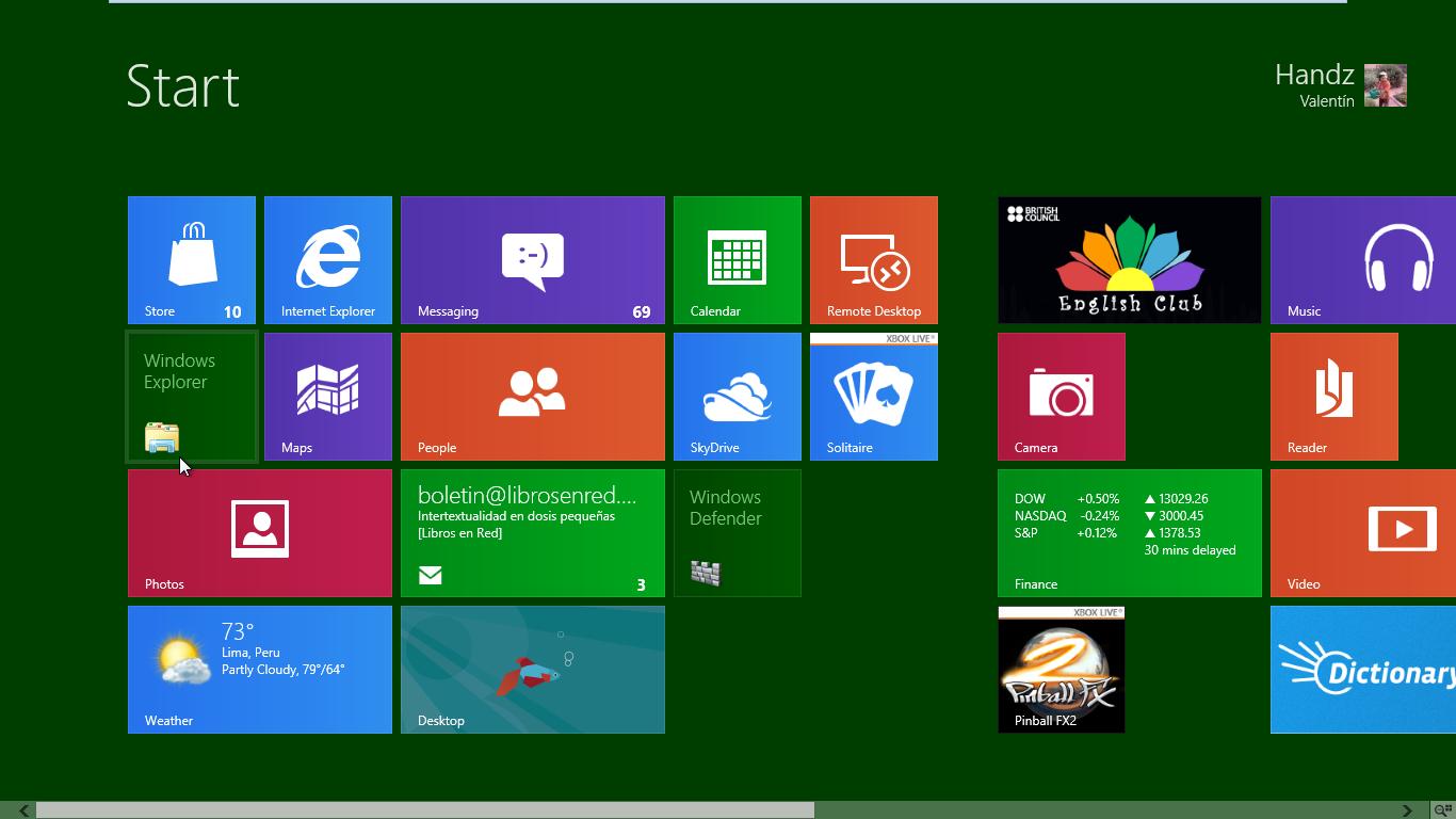 1° En el Start Screen haga clic en el tile de Windows Explorer.