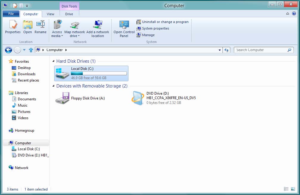 En el siguiente ejercicio explorará el contenido de su disco duro, y accederá a las carpetas del sistema que llegan cuando instaló Windows 8.