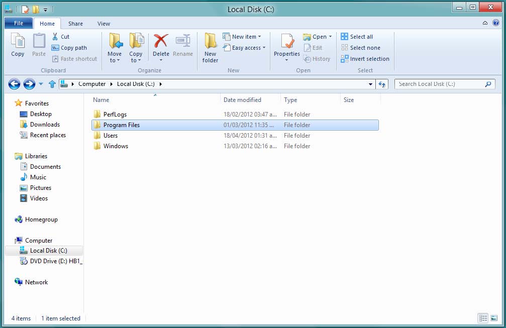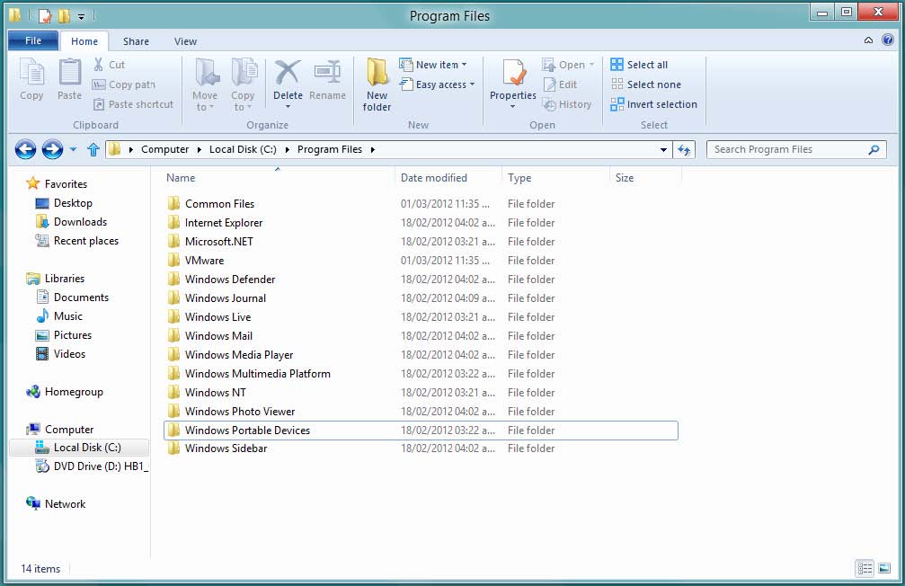 Dentro de la ventana Program Files encontrará todas las aplicaciones instaladas en Windows 8.