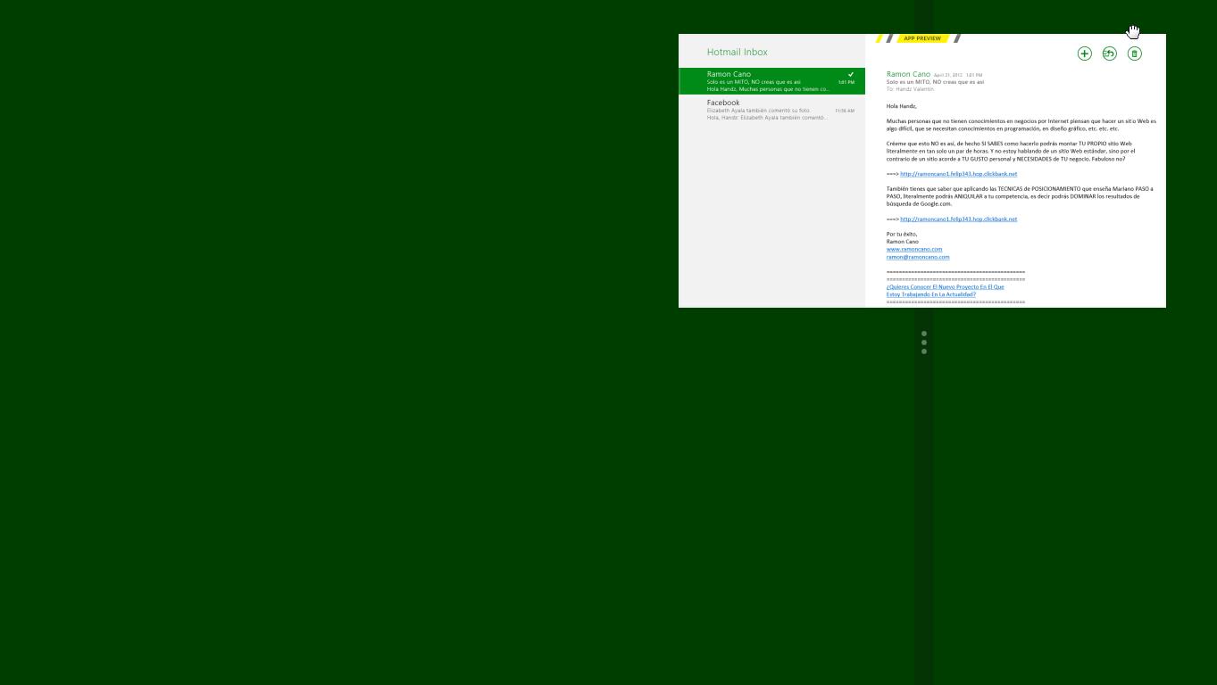 AL igual que con las ventanas clásicas de Windows, usted puede organizar la posición de sus ventanas dentro de la pantalla. Apunte en la parte superior izquierda o derecha casi al final de la pantalla hasta que aparezca una pequeña mano que permitirá mover la ventana. Arrastre hacia abajo para mover la ventana y posiciónela como vistas paralelas a la izquierda o derecha de la ventana.