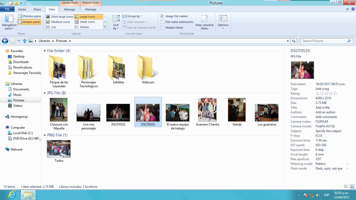 A la derecha de la ventana se muestra un panel con información especial del archivo.