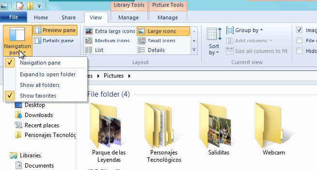 10° En el grupo Panes, haga clic en Navigation pane y clic en Navigation pane.