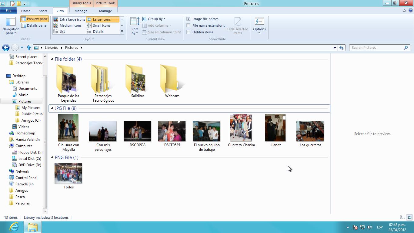 15° En el grupo Show/Hide haga clic en File name extensions.