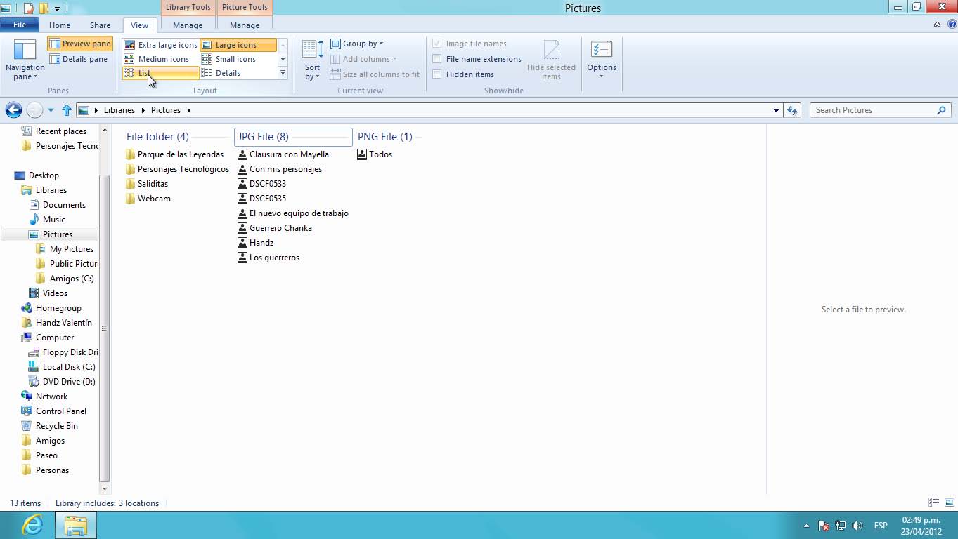 Ahora se muestran los archivos en forma de listas, además los íconos son pequeños.