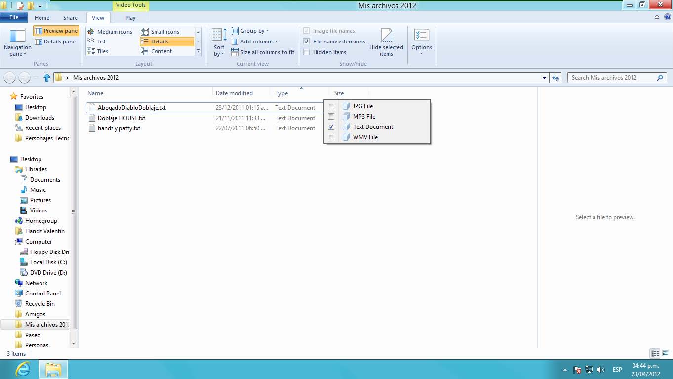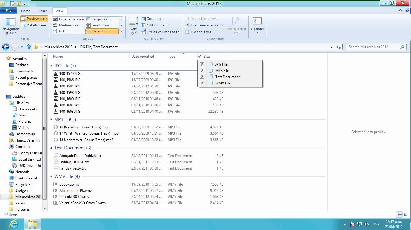 16° Haga clic en el campo Search Mis archivos 2012.